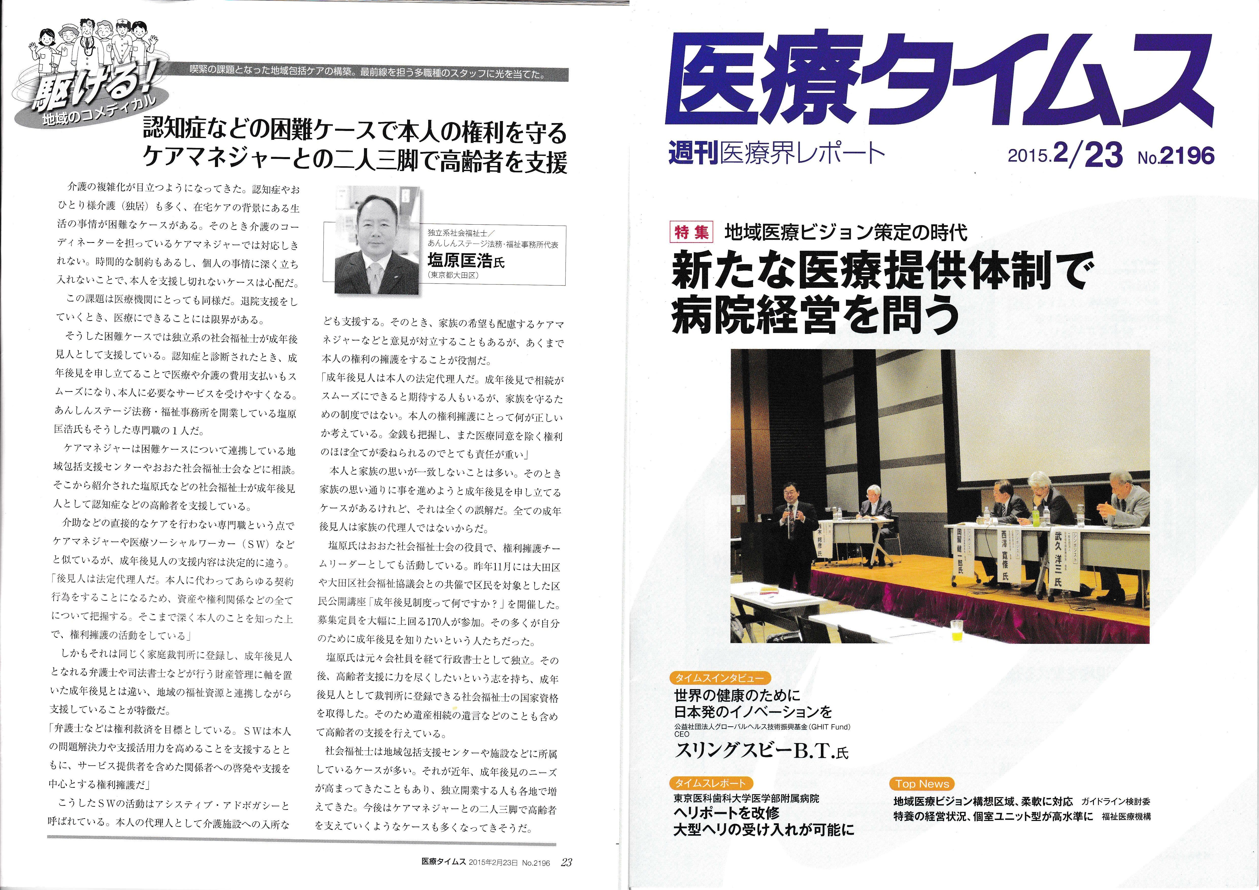 • ◆ 医療タイムス 2015.2.23 No.2196 にインタビュー記事掲載 (医療タイムス社様のご厚意にて記事を転載)
